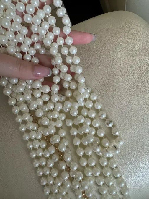 La Cadena de Cuerpo de Perlas Glam se puede colocar fácilmente sobre la ropa como vestidos, suéteres o incluso sobre la piel para un look chic. Su diseño ligero asegura que se mantenga cómoda durante todo el uso.