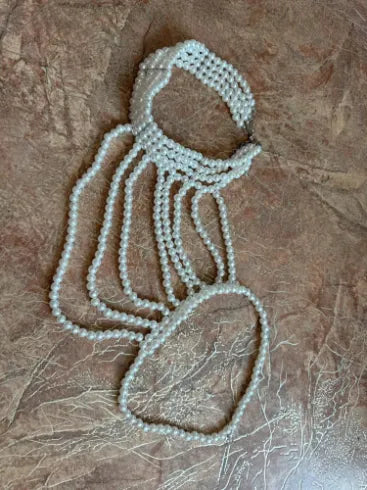 Descubre cómo esta hermosa cadena de cuerpo de perlas eleva cada atuendo. Sus perlas en cascada aportan sofisticación, ya sea que se use con un simple suéter o un elegante vestido de novia. Ideal para quienes quieren captar miradas, esta pieza captura la atención sin esfuerzo. Diseñada para mujeres modernas que desean hacer declaraciones audaces pero de buen gusto. Abraza el estilo y haz que cualquier ocasión se sienta especial con esta impresionante adición a tu colección de joyas.