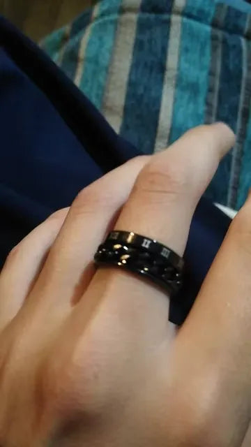 "¡OMG! Me encanta este anillo. Es elegante y me ayuda a mantener la calma durante reuniones estresantes. El girador es súper suave y adictivo para jugar. Lo recomiendo mucho a cualquiera que necesite un poco de alivio del estrés mientras se ve genial!😎👍 - Mark D."